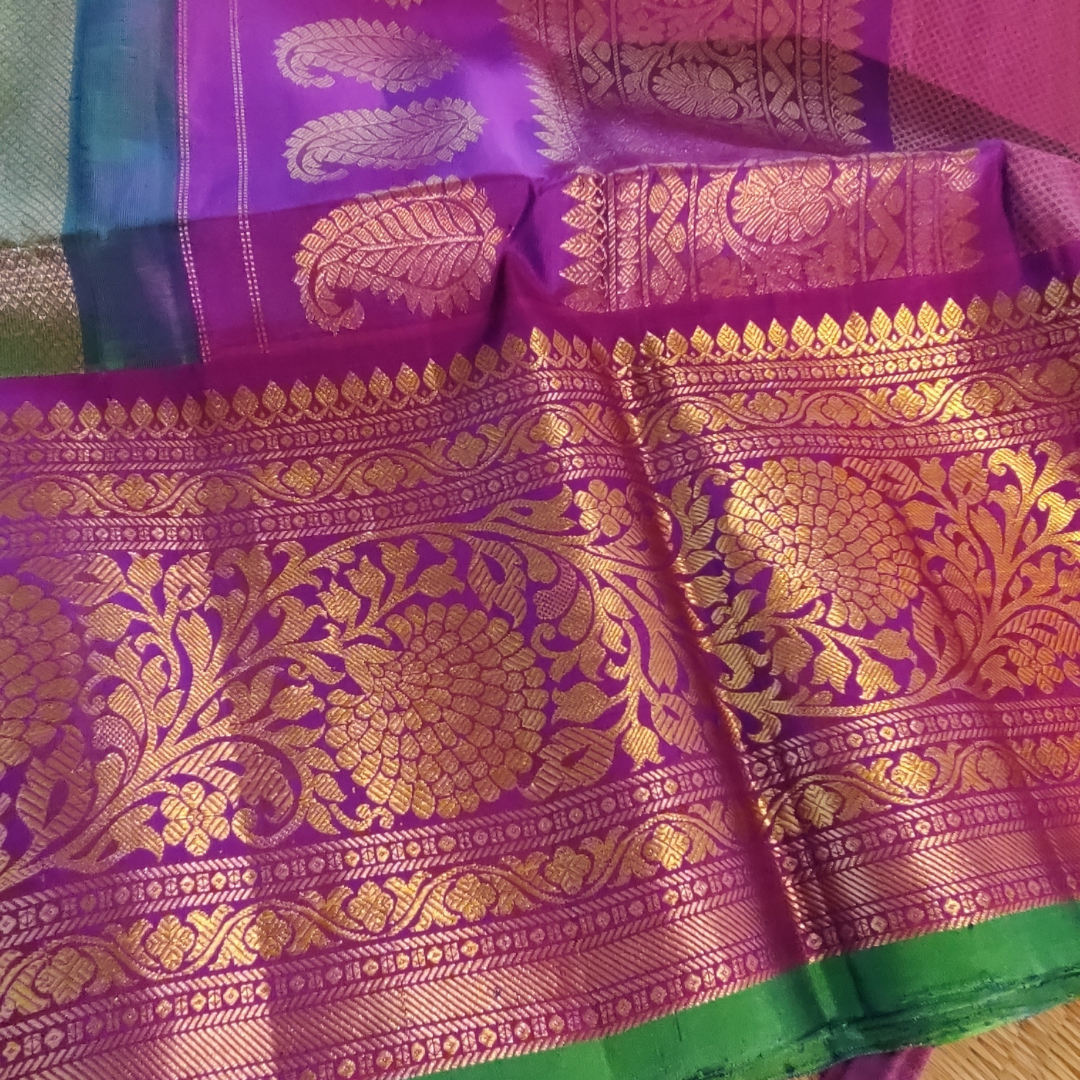 Gadwal Handloom Peacock Blue Brocade with Magenta