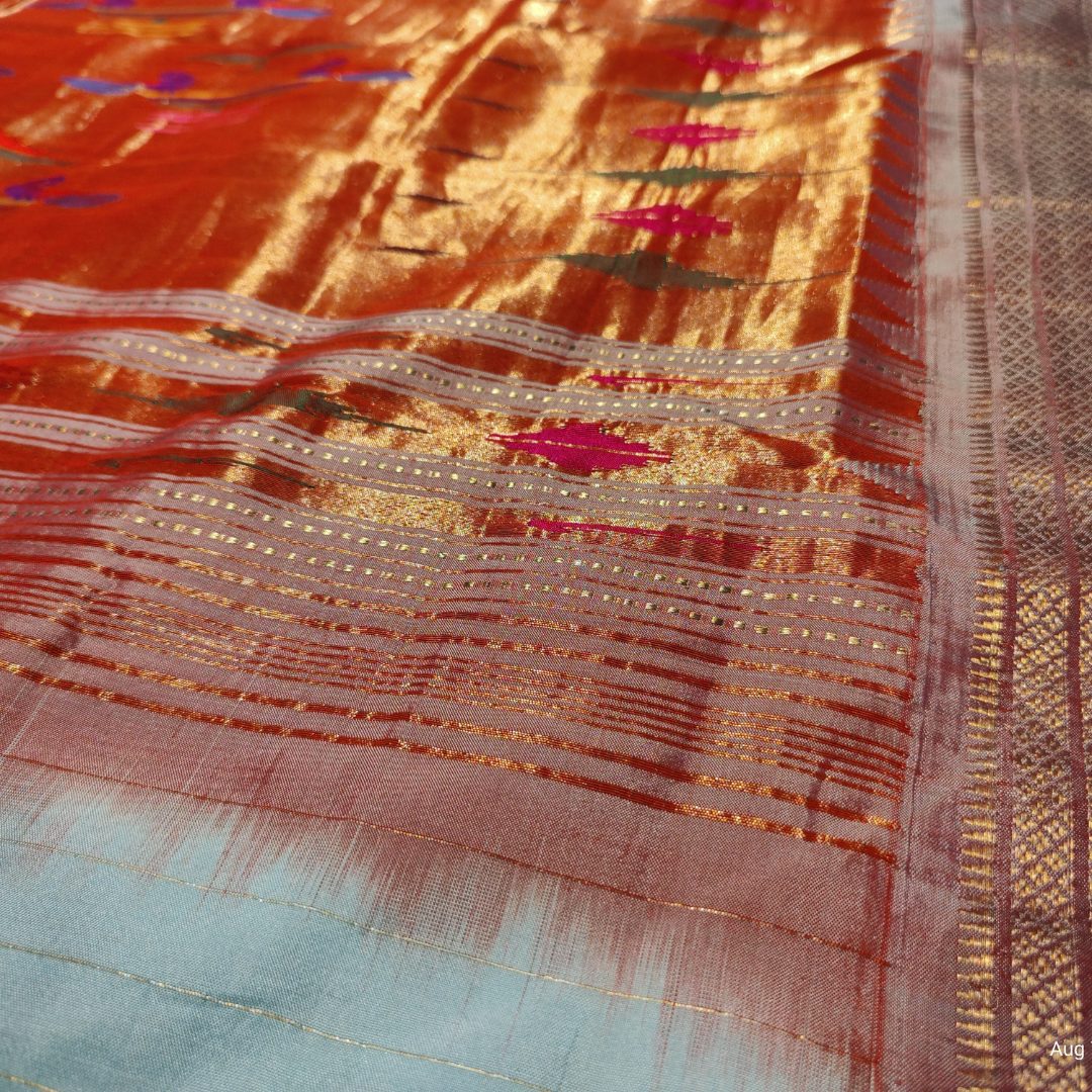 Be the first to review “Designer Paithani Silk Saree Light Blue with Aboli pink Border”