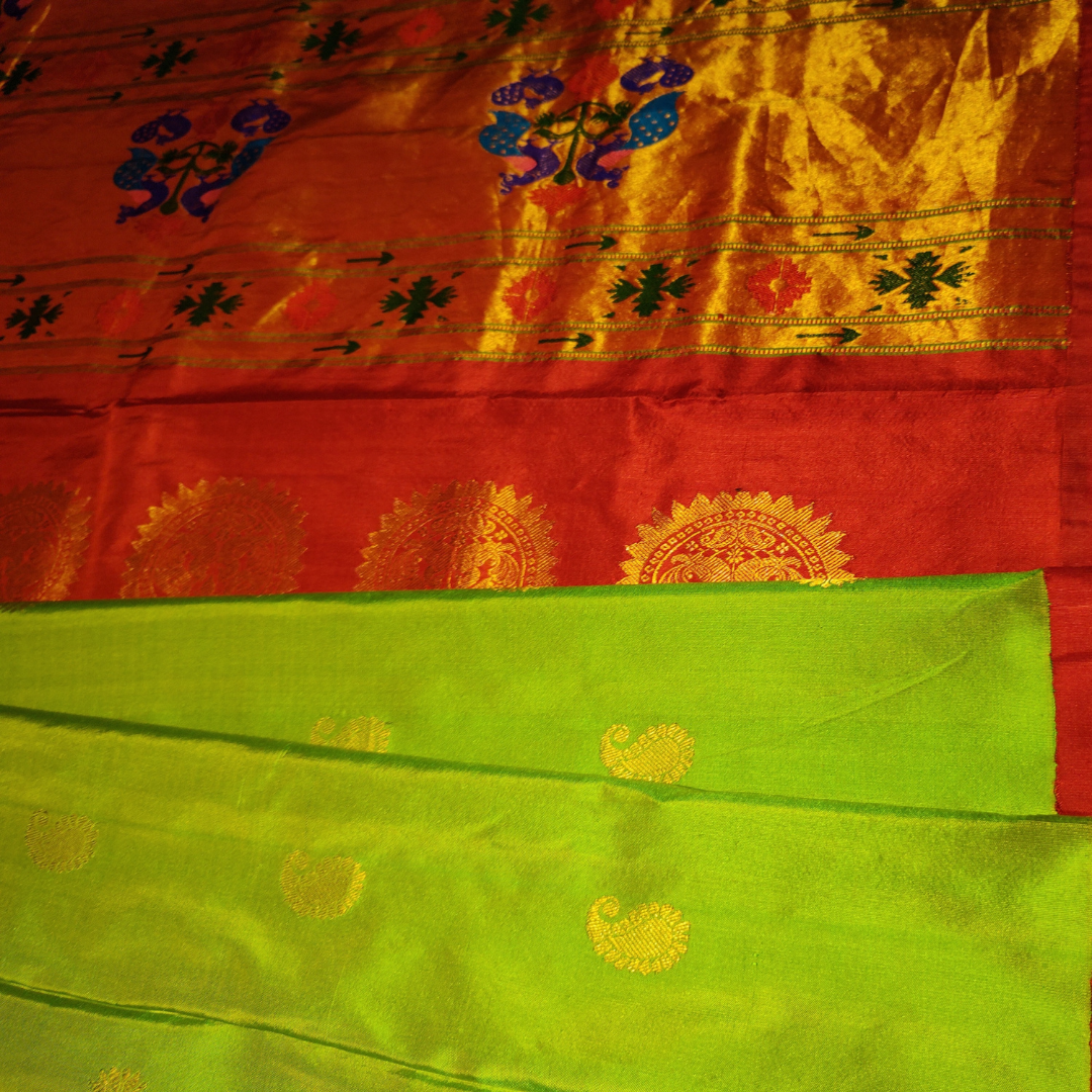 Be the first to review “Parrot Green Paithani Silk Saree with Red border”