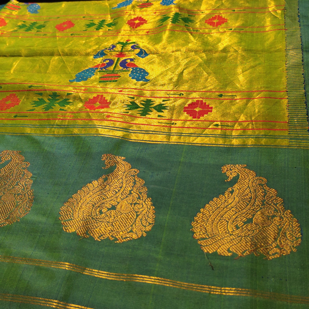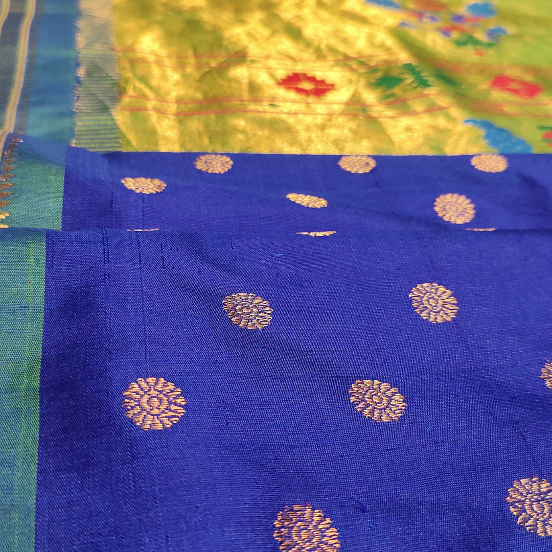 Peacock Blue Paithani Silk Saree with Cian Border